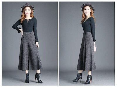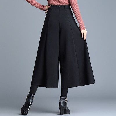 [出荷が早い]ワイドパンツ スカーチョ レディース ガウチョ ウール調 ゆったり パンツ 9分丈 フォーマル ガウチョパンツ 大きい値引きして売る