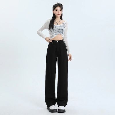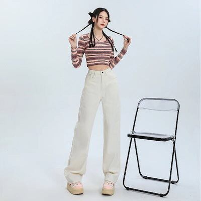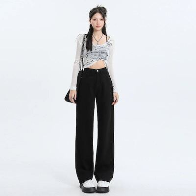 デニムかっこいいスラックスパンツ25 デニムパンツ おしゃれ ハイウエストゆったり見えやせ パンツ レディース 垂れ感ワイドパンツ