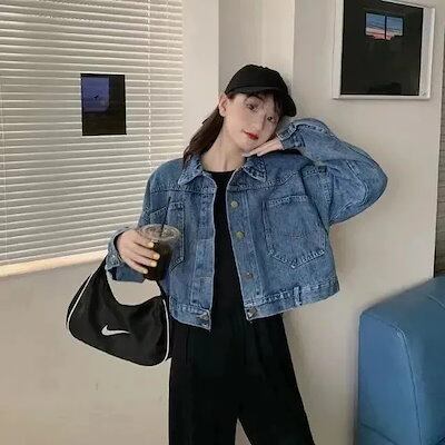 25初新作 新作 風 レディーストップス アウター ゆったりショートトップスヴィンテージ ウォッシュ 開き襟 ジャケット トップス カジュアル デニム アウター ジャケット