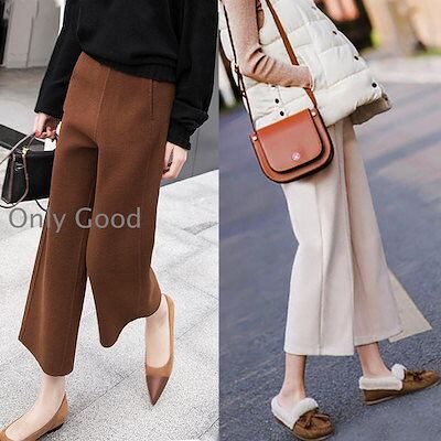 ワイドパンツ レディース 秋冬 九分丈パンツ ラシャズボン ストレートズボン 黒 無地 厚手 ゆったり 大きいサイズ 30代40代50代 カジュアル ボトムス 着痩せ