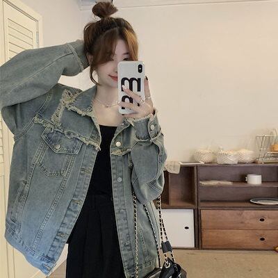 コーデに役立つデニムジャケットファッション レトロ ゆったり カジュアル デニムコートレディース デザインデニムジャケット トップスファッション
