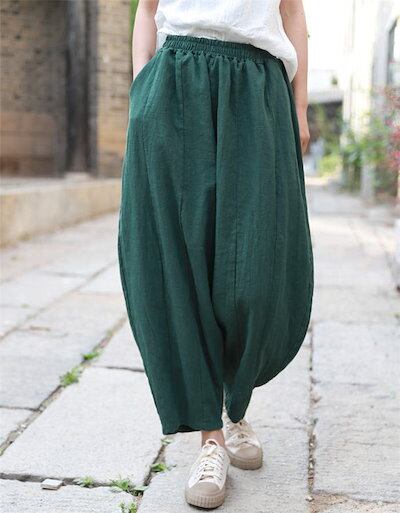 新作入荷!!!最新のデザインは超リネンパンツ バルーンパンツ レディース サーカスパンツ リネン ワイドパンツ イージーパンツ コクーンパンツ 春 夏 秋 個性的 ゆったり ボトムス 綿麻混 切り替え