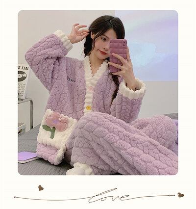 売り切れ注意ルームウェア レディース 長袖 上下セット 冬 ふんわり もこもこ 暖かい ボア 防寒 保温 トップス ルームパンツ セットアップ 2点セット パジャマ 部屋着 ゆったり 起毛 ロングパン