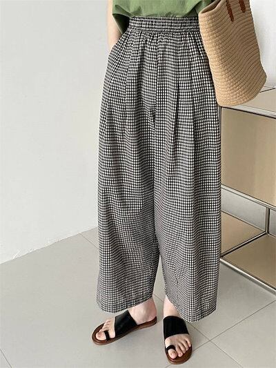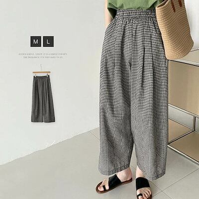 【激安販売】ワイドパンツ レディース 夏 9分丈パンツ ギンガムチェック タック イージーパンツ タックワイドパンツ ゆったり ボトムス 春夏 ワイド チェック 体型カバー ウエストゴム チェックパン