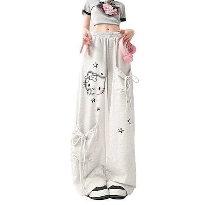 レディース 春秋 カジュアル 個性 ジャズダンス hello kitty ワイドパンツ グレー ゆったり 運動 ロングズボン最安価挑戦