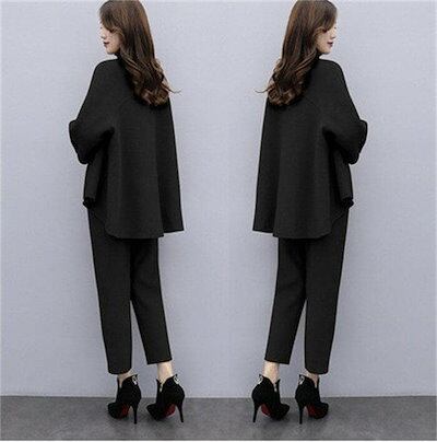 セットアップレディース40カジュアル大きいサイズニットニットセータープルオーバーワイドパンツニットセットアップ長袖ゆったりサイドスリットタートルネック無地通勤入園式卒業式1996夏大人気