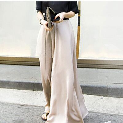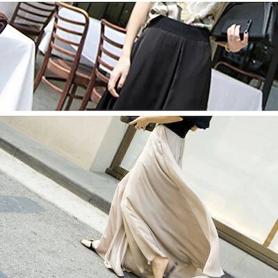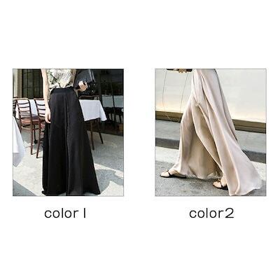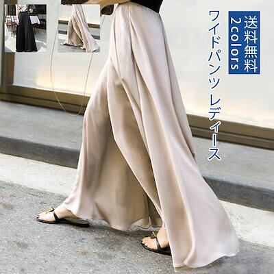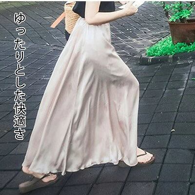 【コスパ最高】ワイドパンツ レディース ワイド スカーチョ フルレングス 光沢感 ウエストゴム ゆったり 楽ちん