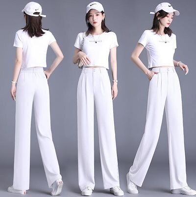 こだわりの証3色 ガウチョパンツ 美脚 ワイドパンツ レディース カジュアル ゆったり ズボン ボトムス スラックス ビジネス 薄手 春 夏 長ズボン 水洗い ポケット付き 腰高 腰部分ゴム付き ハイ