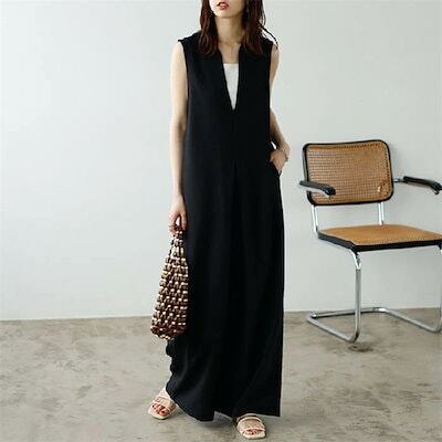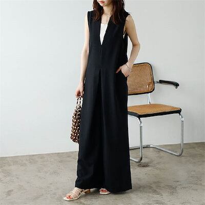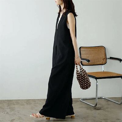 可能性を広げる大,オールインワン レディース サロペット パンツ ワイドパンツ 深Vネック 春 夏 秋 ゆったり 体型カバー 女性 お呼ばれ 可愛い ワイドシルエット 大きいサイズ シンプル おしゃれ