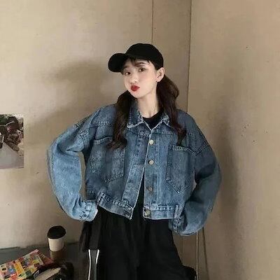 2026初春新作 新作 ?国風 レディーストップス アウター ゆったりショートトップスヴィンテージ ウォッシュ加工 開き襟 ジャケット トップス カジュアル デニム アウター ジャケット店長おすすめ