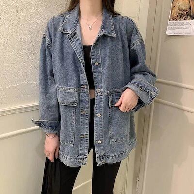 韓国ファッションレディース ゆったり 長袖ジャケットトップス アウター コーデに役立つデニムジャケット今すぐ購入