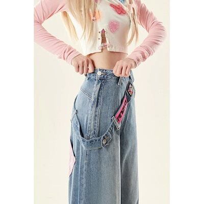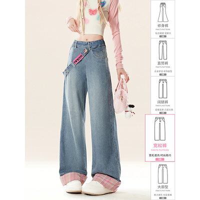 2026新品大人気【最安値 急速出荷】ナチュラルで渋いアメリカンサイドジップジーンズ春と秋のレディースワイド脚ゆったり小柄冬のギャザーパンツ