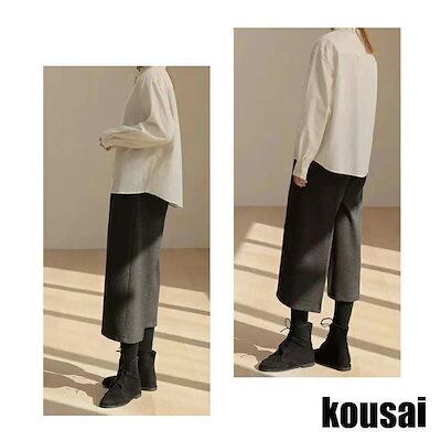 新発売ウール調 ガウチョパンツ レディース 秋 冬 ガウチョ パンツ 低身長 タック入り 八分丈 ロングパンツ ひざ下 ワイドパンツ 秋冬 ゆったり カジュアル ほっこり