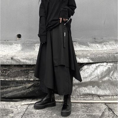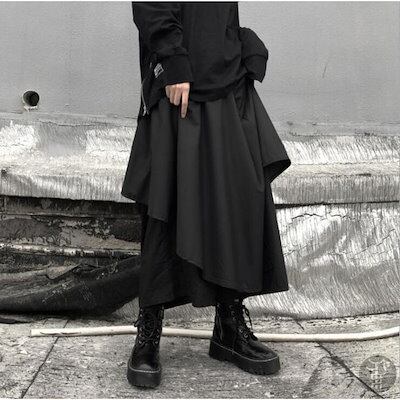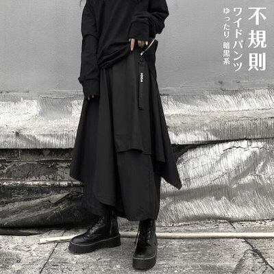 ワイドパンツ 春 夏 秋 スカート風 レディース ガウチョ パンツ ゆったり 暗黒系 二重 不規則 かっこいい