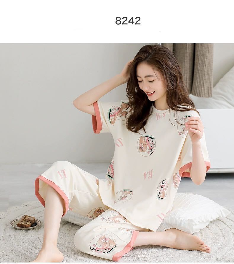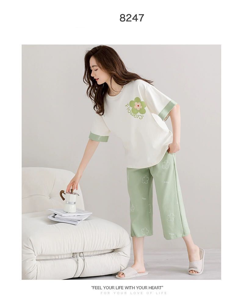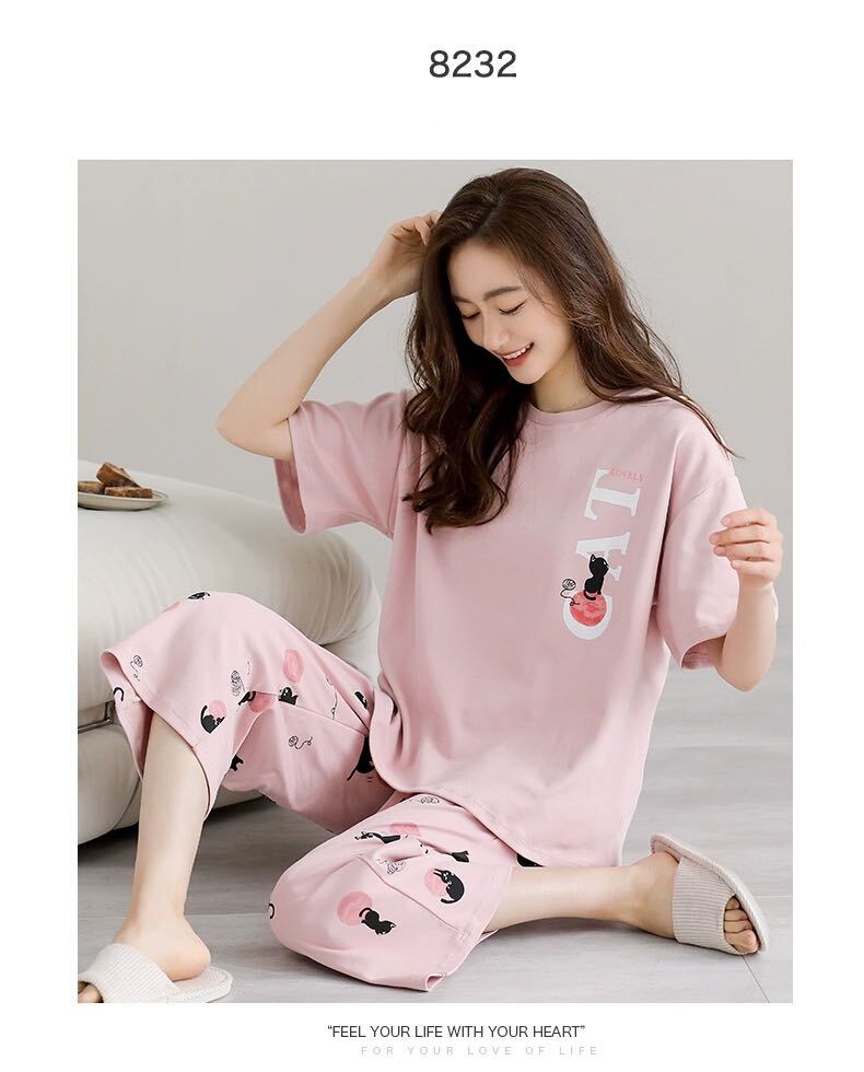 初回送料無料 夏 ルームウェア 半袖 七分ズボン セット パジャマ レディース カジュアル