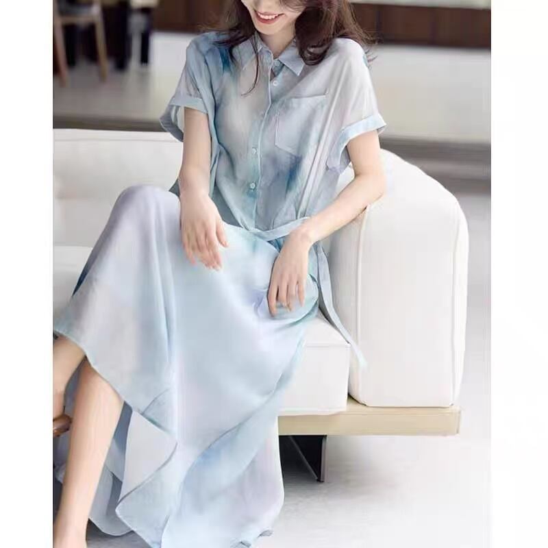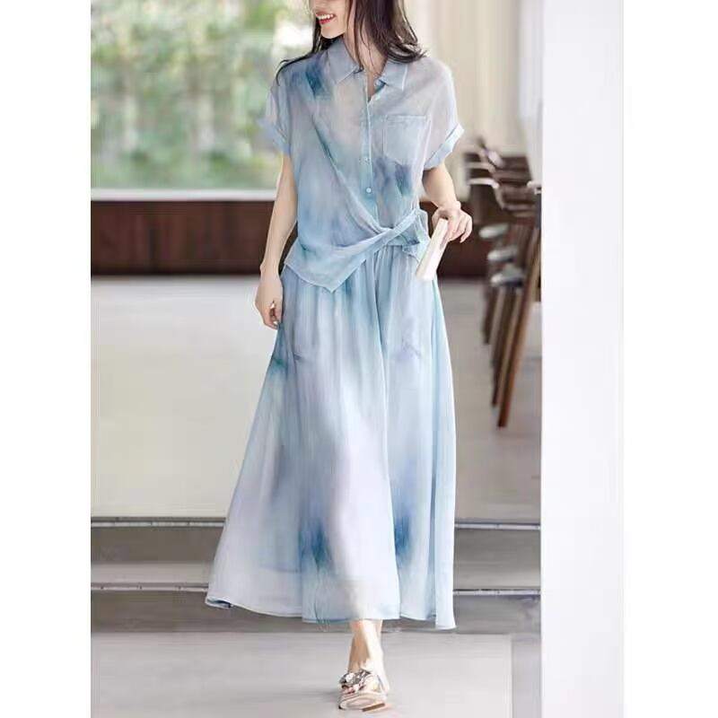 初回送料無料 夏作半袖プリントシャツ上着 半身スカート2点セット レディースファッション人気