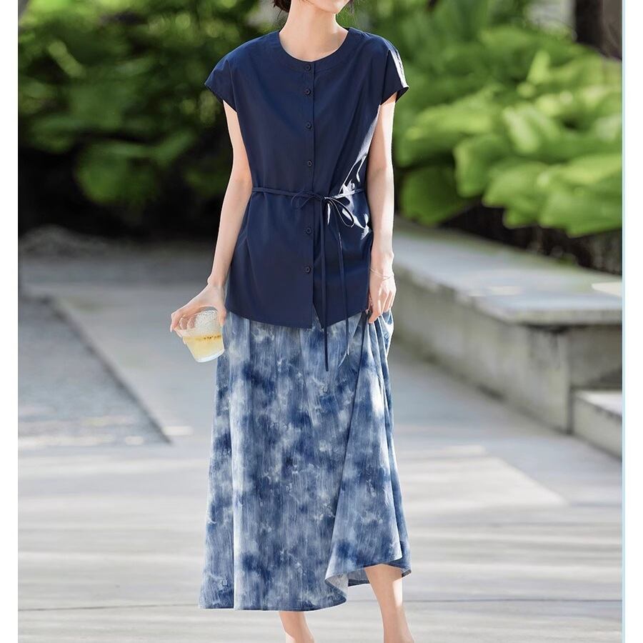 初回送料無料 夏作エレガントシャツ上着 半身スカート 2点セット レディースファッション人気