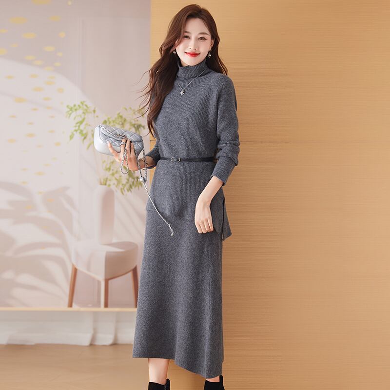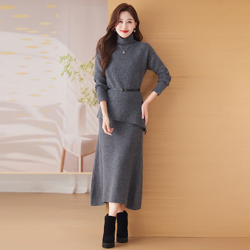 初回送料無料 新作レディースファッション ニットセーター トップス 半身スカート 上下2点セット