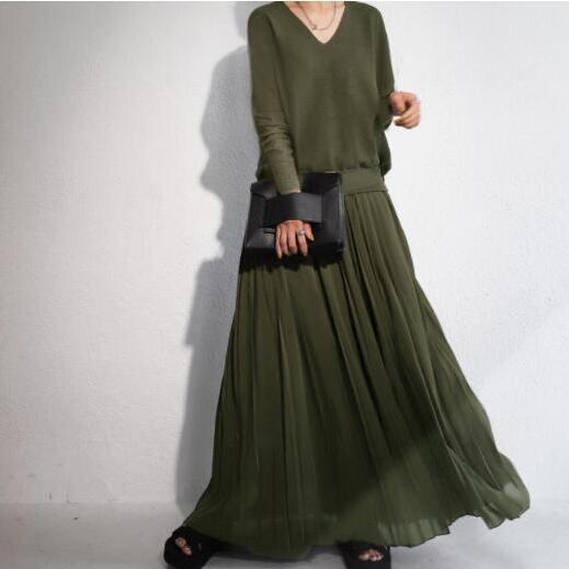 ニットワンピース Vネック 厚手 おしゃれ 体型カバー エレガント ロング レディース