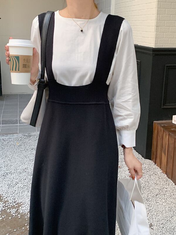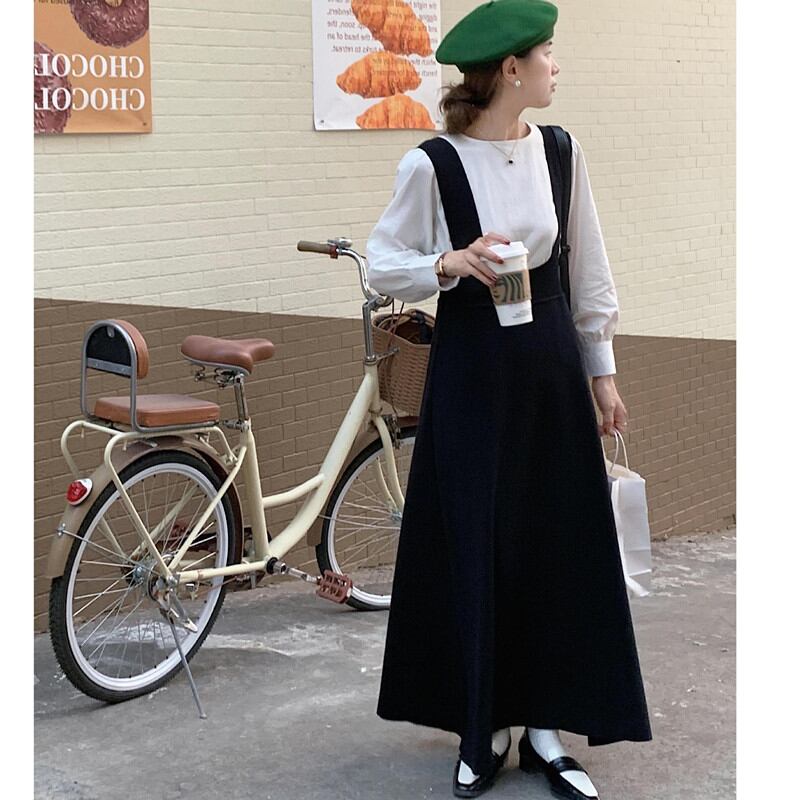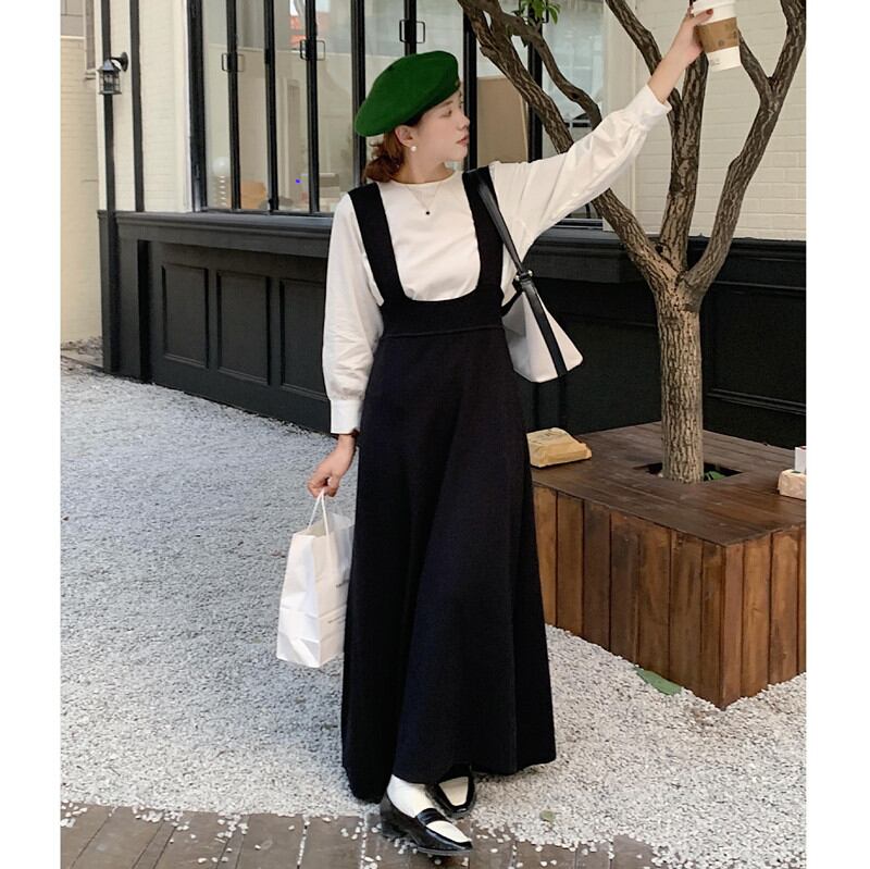 長袖シャツ サスペンダースカート サロペットスカート 体型カバー ロング 韓国風 レディース