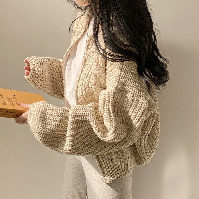 カーディガン ニットセーター レディース 厚手 ニットトップス レトロ 体型カバー チャック付き