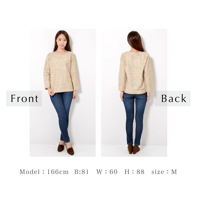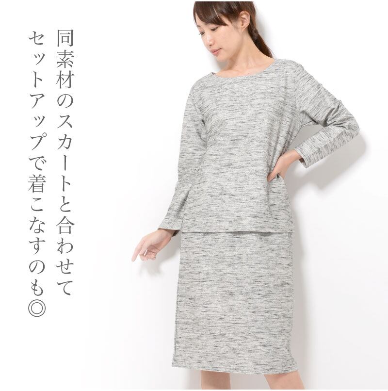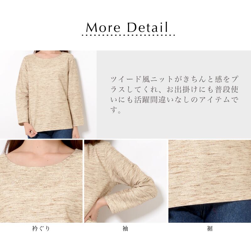 【日本製】 カットソー M L LL 3L レディース トップス 長袖 ツイード風 ニット ボートネック 綿混