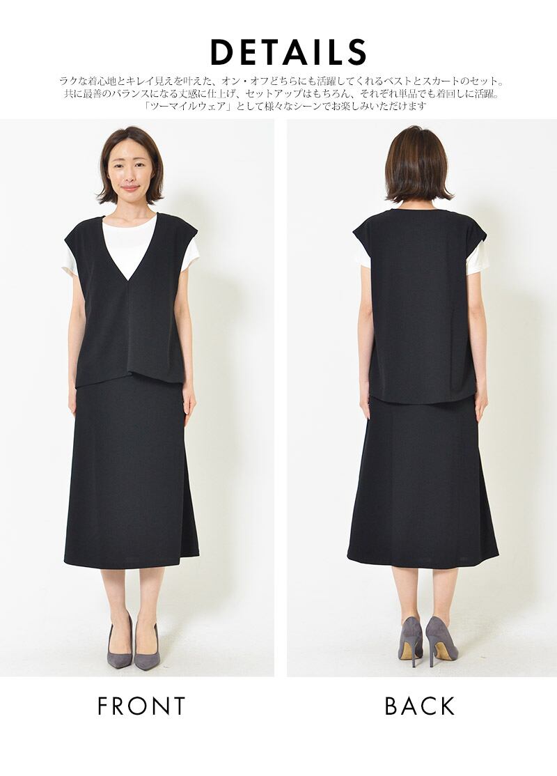 【2点セット】 ベスト&スカート S M L レディース 半そで ツーマイルウェア ジョーゼットポンチ素材