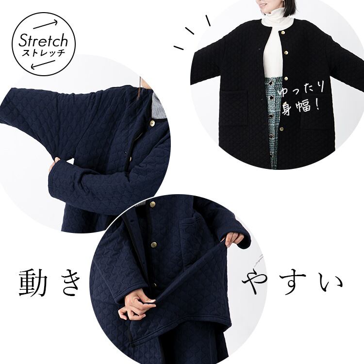 【在庫処分】 キルティング風コート 中綿 アウター コート ニット ジャカード編 冬アウター