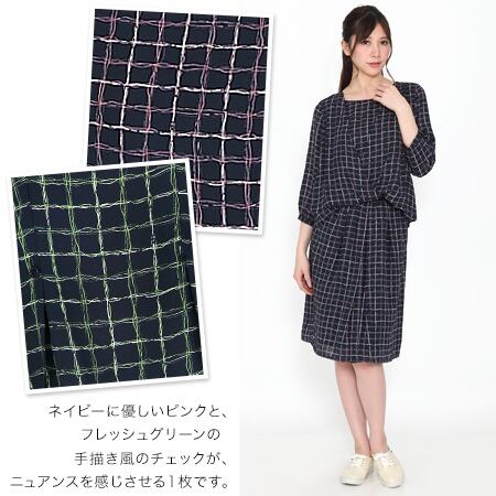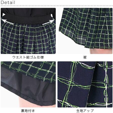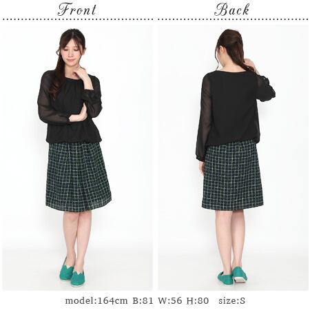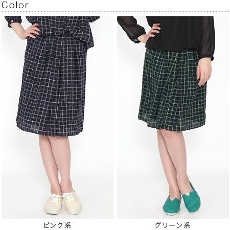 スカート S M L LL レディース ボトムス ひざ丈 チェック タック フレア 裏地付 【最安