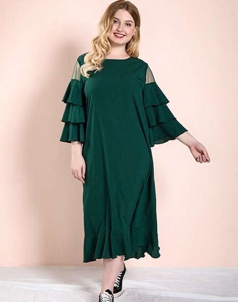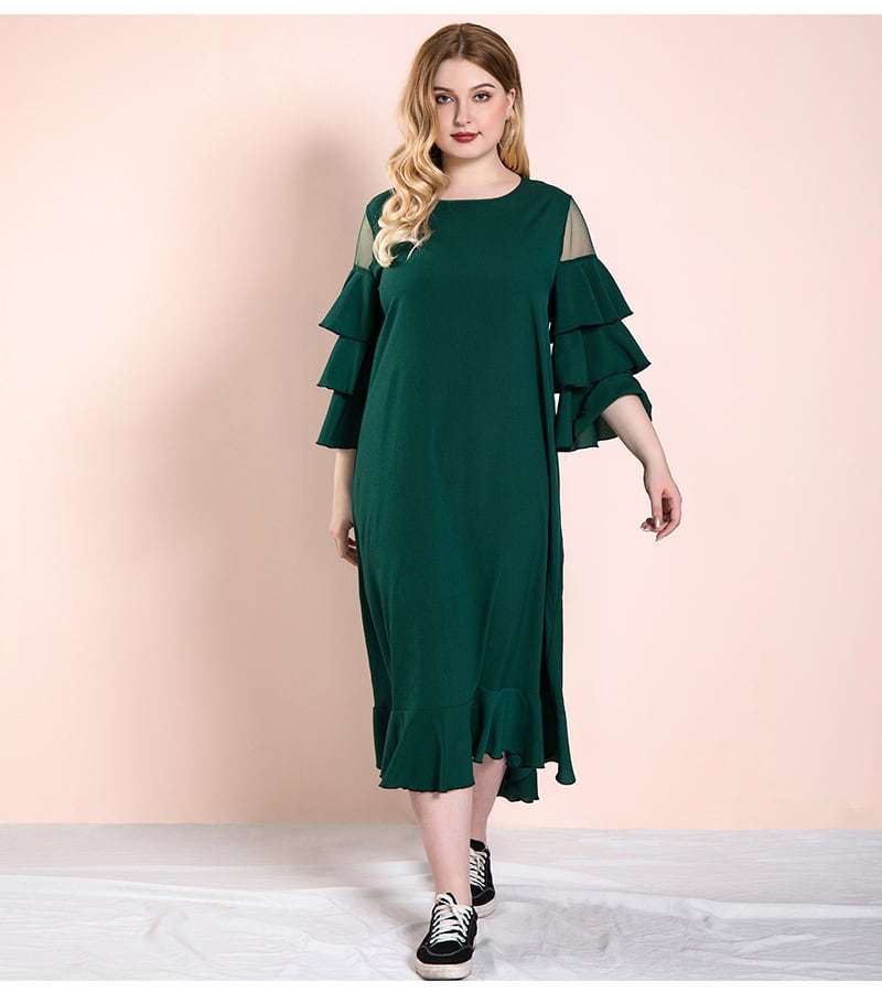 ★2L~5L★大きいサイズ★ぽっちゃりさん ゆったり 可愛いフリル ロングワンピース