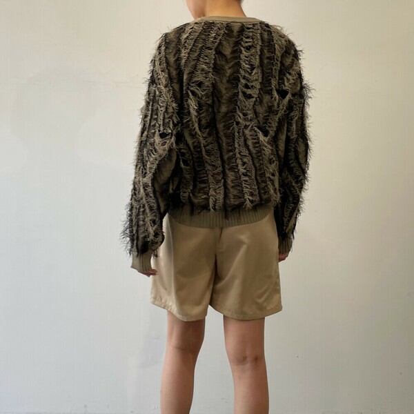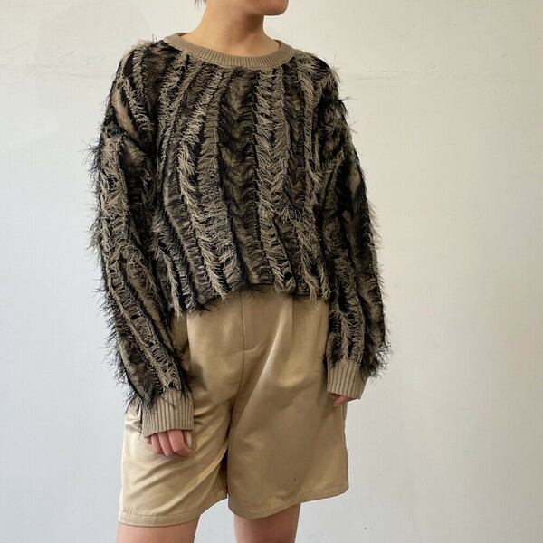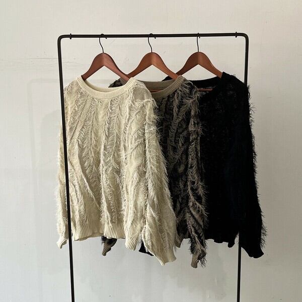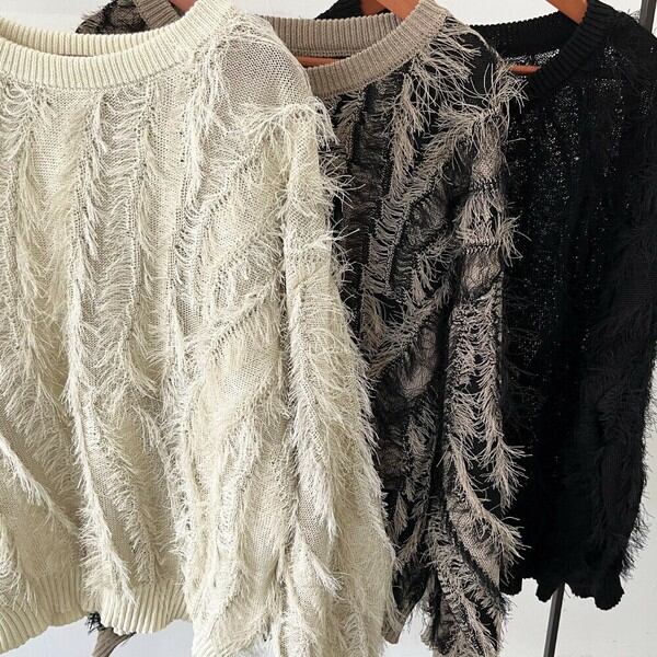 【2025新作】麻タッチフリンジニットクルーネックプルオーバー