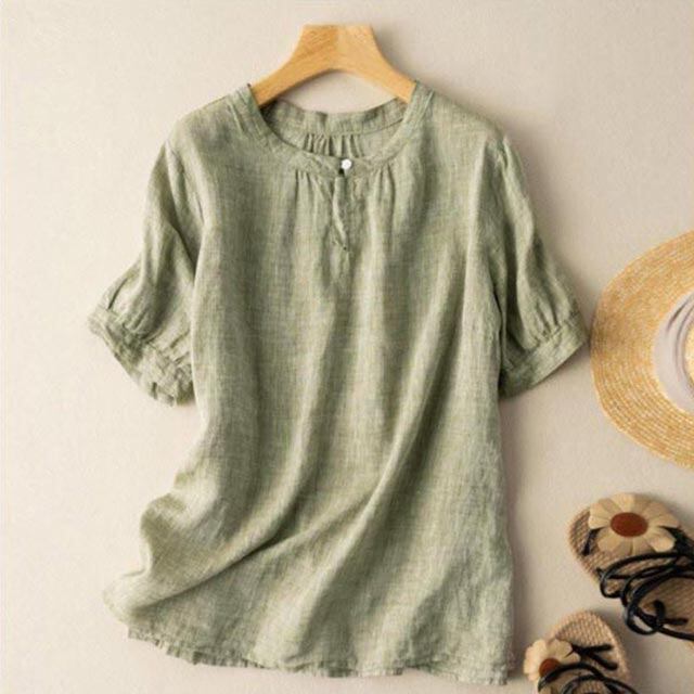 ブラウス シャツ レディース トップス ラウンドネック 綿麻 コットンリネン 半袖 大きい