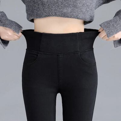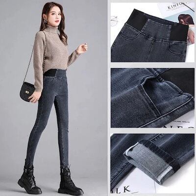 国内発送 8cm ストレッチ デニムパンツ 強力ストレッチ スリムパンツ ウエストゴム スキニー ロングパンツ 裏起毛 オールシーズン レディース