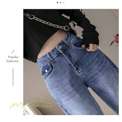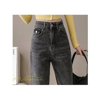 レディース テーパードパンツ 綿 デニムパンツ シンプル ハイウエスト 上品 カジュアル ロールアップ 着痩せ 女性用 スリム デニム ストレート ジーパン 韓国