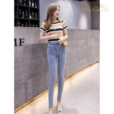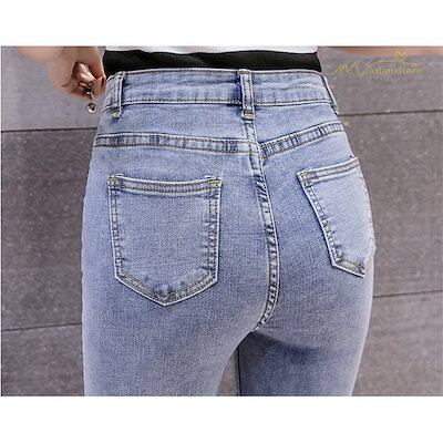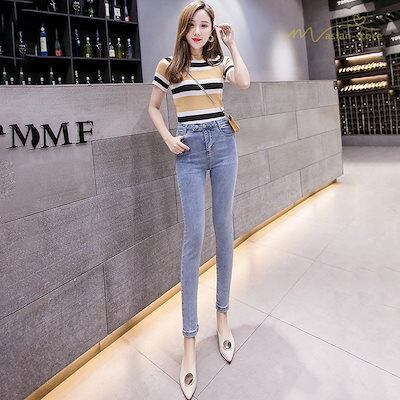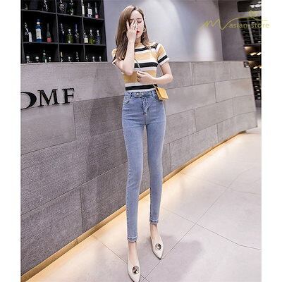 デニムパンツ ボトムス ジーンズ タイツ スキニー レギパン 細身 シンプル ハイウエスト スリム レディース カジュアル 九分丈パンツ ペンシルパンツ 二つボタン