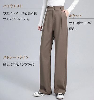 ハイウエスト 美脚 脚長 ストレートパンツ レディース ボタンストラップ ワイドパンツ 女性 ボトムス ワイド パンツ ハイウエストパンツ ズボン 長ズボン ロングパンツ スリム スタイルアップ ウエ