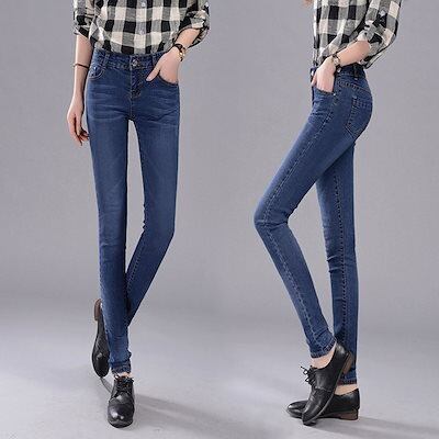 デニムパンツ ジーンズ レディース スキニーデニム ハイウエストスキニーパンツ ボトムス スリム 大きいサイズ ロング丈 美脚 お洒落 可愛い 薄手 ストレッチ 無地 アメカジ ストリート カジュアル