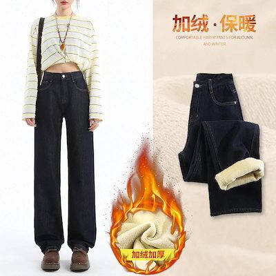 ワイドパンツ レディース 2025 冬新作 レディース 裏起毛 厚手デニム ハイウエスト 洋ナシ体型向け スリム効果 ナローワイドレッグ ドラッグパンツ 裏起毛パンツ ワイドパンツ 裏起毛