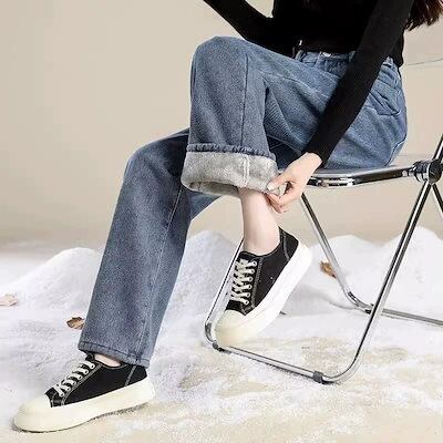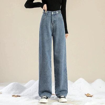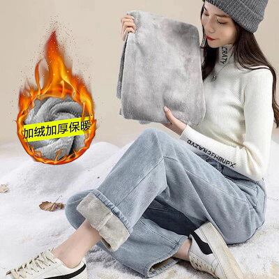 ワイドパンツ 裏起毛 2025 秋冬新作 レディース ダークトーン裏起毛ワイドレッグデニムハイウエストスリム効果 ルーズストレート アウター着用 裏起毛パンツ ワイドパンツ レディース