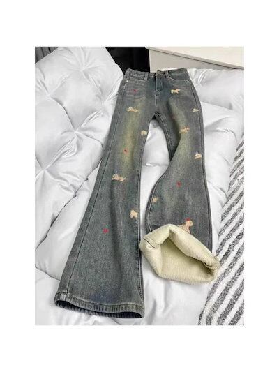 ワイドパンツ 裏起毛 2025 秋冬新作 レディース 裏起毛厚手マイクロフレアデニムハイウエストスリム効果 弾性付き ストレートワイドレッグ ホースシューパンツ 裏起毛パンツ ワイドパンツ