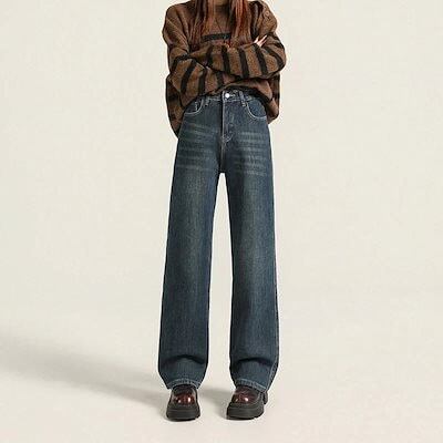 ワイドパンツ 裏起毛 2025 冬新作 レディース ブルー裏起毛ストレートデニムハイウエストルーズ ペティット向け ナローワイドレッグ スリム効果 裏起毛パンツ ワイドパンツ レディース