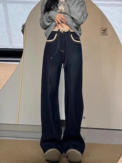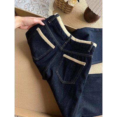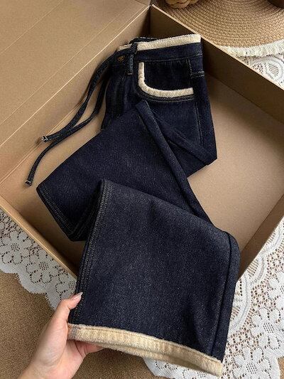 ワイドパンツ 裏起毛 レディース ネイビーストレートデニムプラスサイズ対応 裏起毛 厚手 ハイウエストルーズ スリム効果 ワイドレッグ 裏起毛パンツ