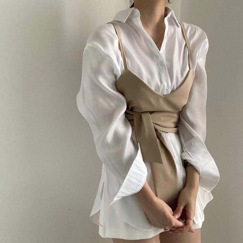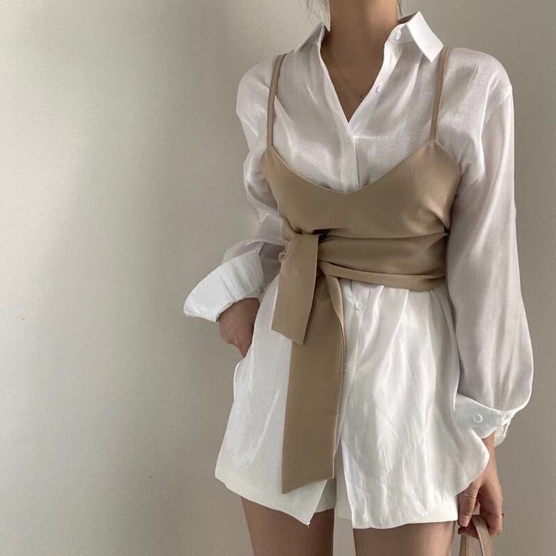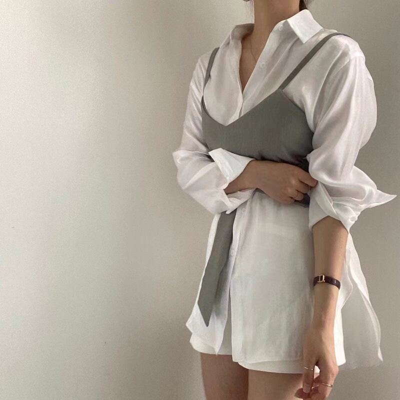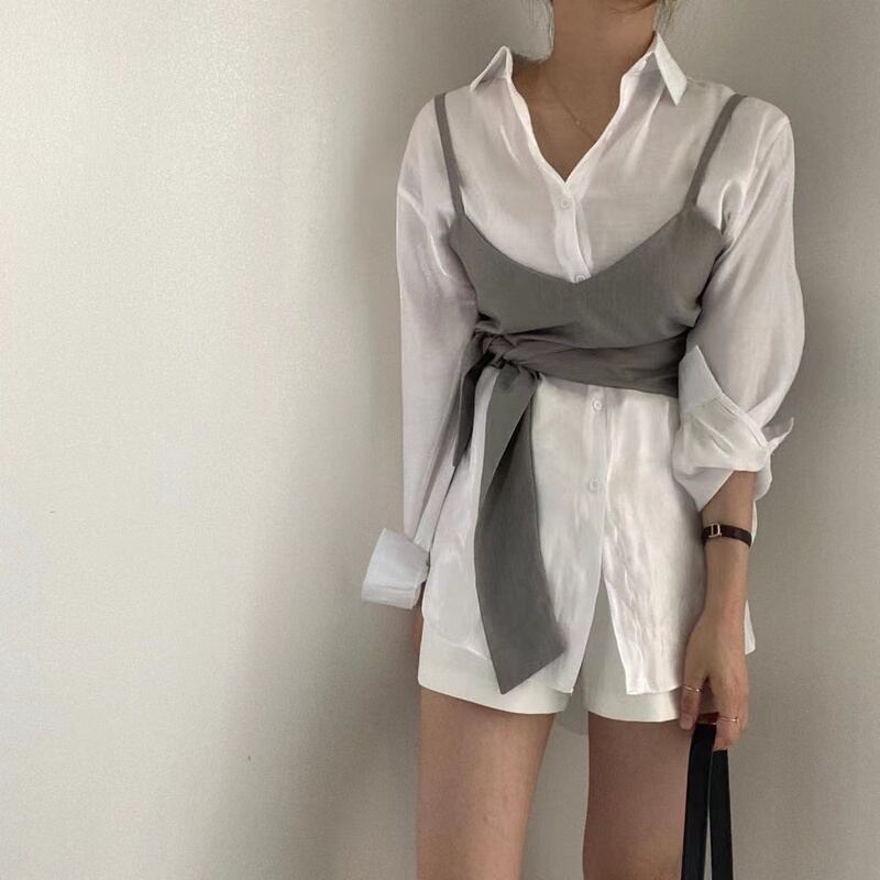 【2024春新作】韓国風レディース服 春 キャミソール&長袖シャツ おしゃれ 2点セットアップ