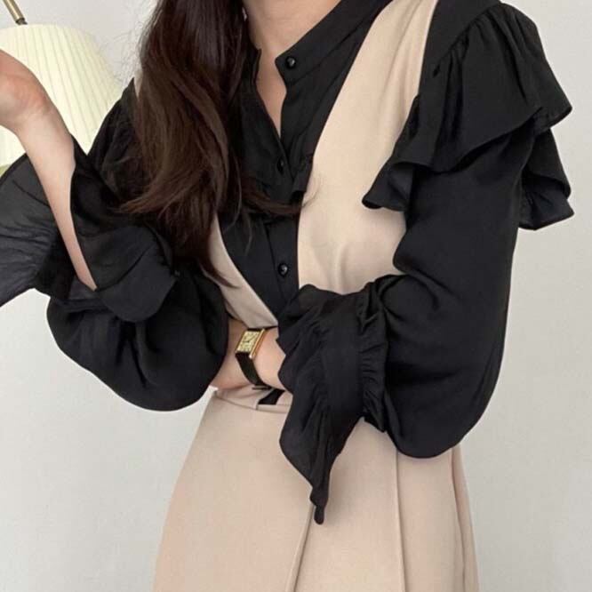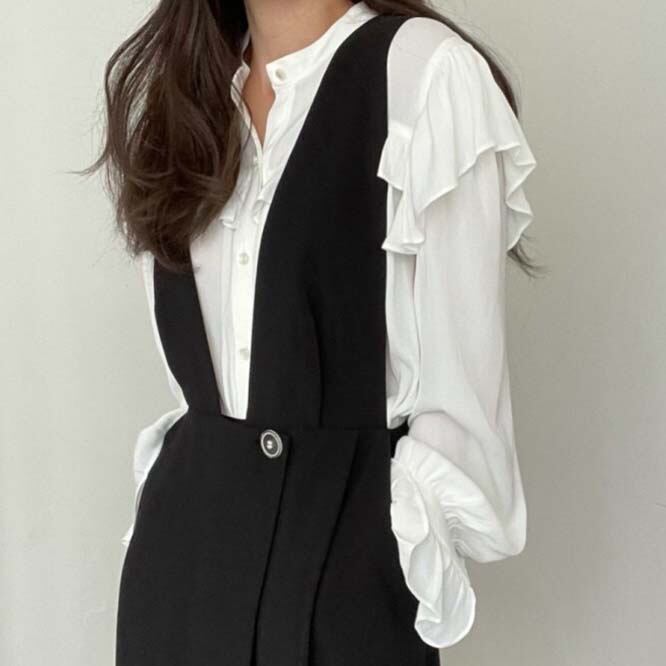 【秋新作】韓国風レディース服 ゆったり カジュアル きれいめ シャツ&サロペットスカート セットアップ