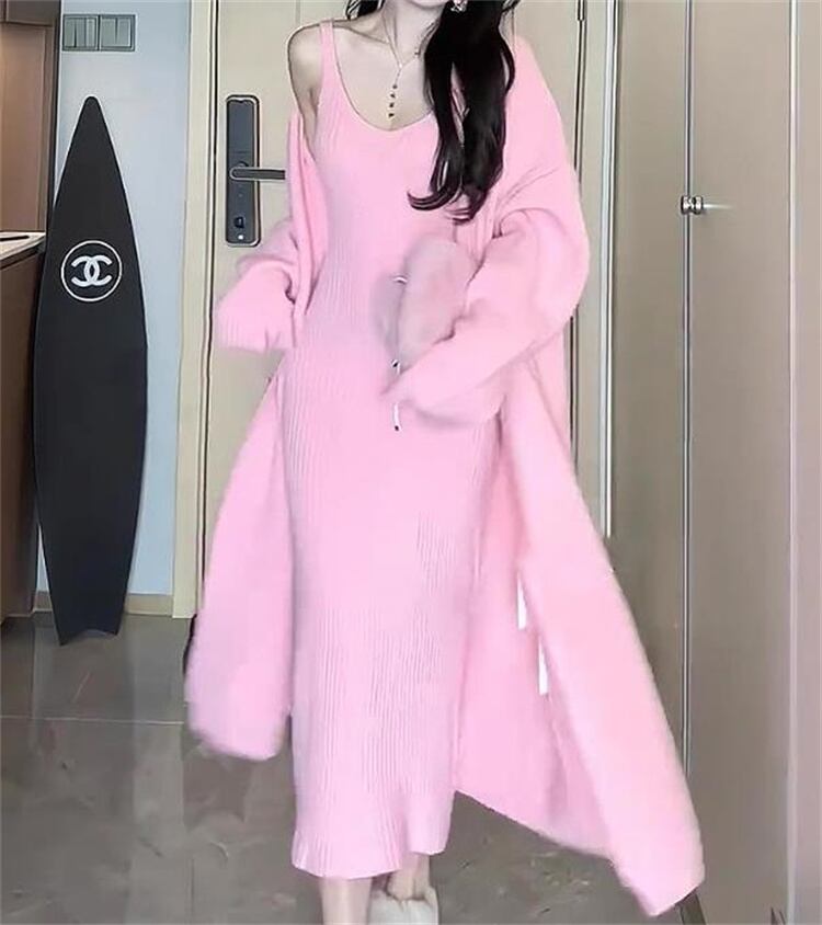 新しいデザイン セットアップ キャミワンピース 袖なし ニットトップス セーター スカート
