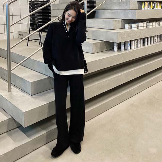 【冬新作】韓国風レディース服 冬 ゆったり レイヤードトップス カジュアル きれいめ セットアップ