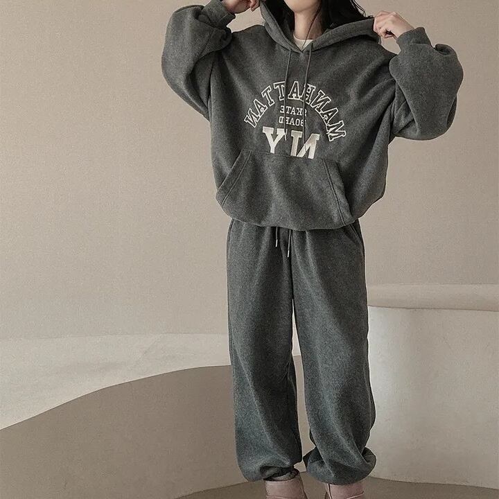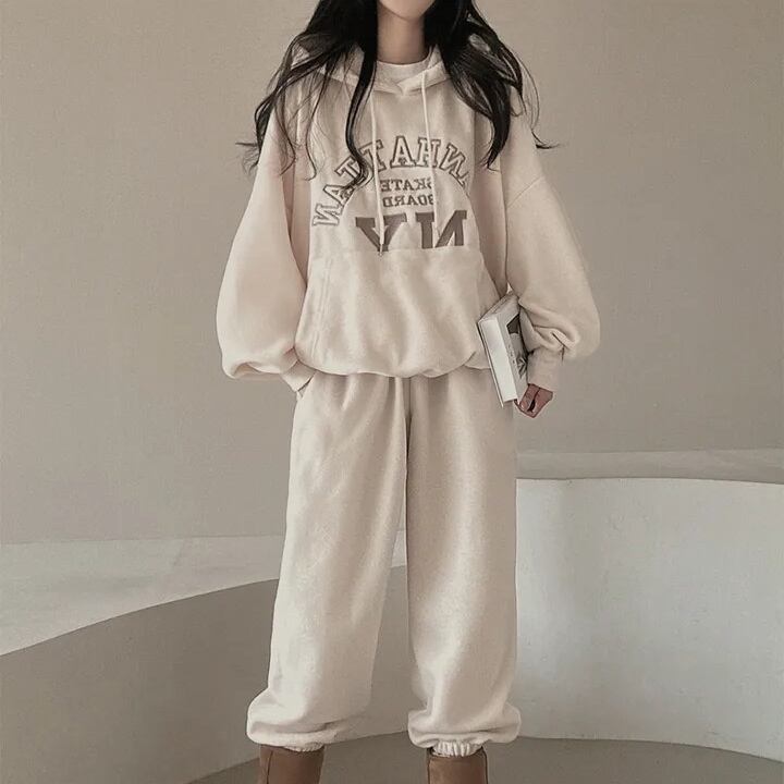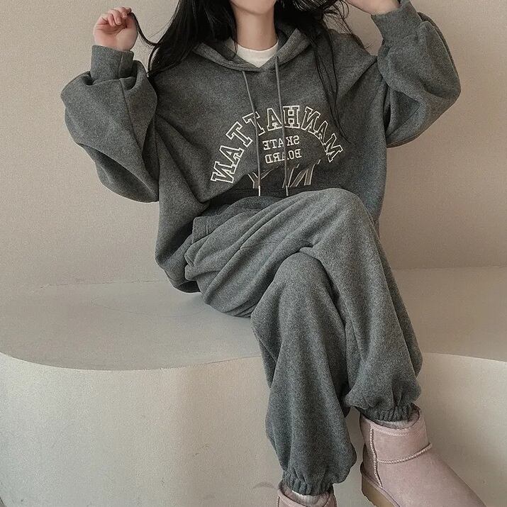 【2024春新作】韓国風レディース服 ゆったり カジュアル きれいめ パーカー トレーナー セットアップ