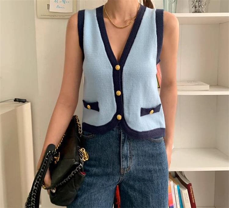 優しい着心地 早い者勝ち ベスト セットアップ Vネック タンクトップ 単体ボタン 長袖 ニットトップス