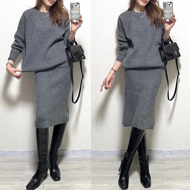 2026年新作 ニットトップス プルオーバー 上下セット 2点セットアップ ニットスカート おしゃれ