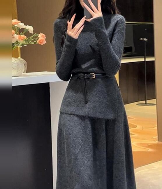 2024年INS 秋冬新作 気質 おしゃれ トップス ニットセーター+スカート セットアップ 3色